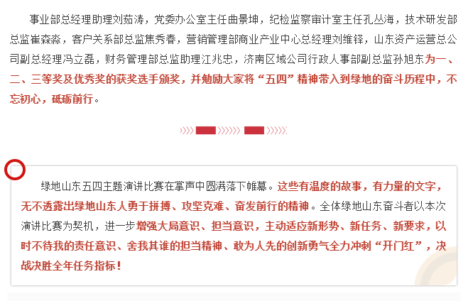 讓青春在綠地綻放——綠地山東五四主題演講比賽成功舉辦